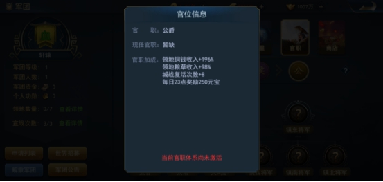 军团占领都城之后即可激活对应体系的官职,担任官员虽不能直接获取铜钱,但官员会提升大量封地铜钱产出量。