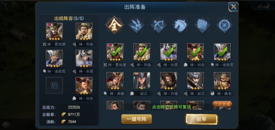 3. 无论是进攻部队或是防守部队,都需要派满5名武将才可组建一直队伍,不满员的队伍无法派遣的战场中