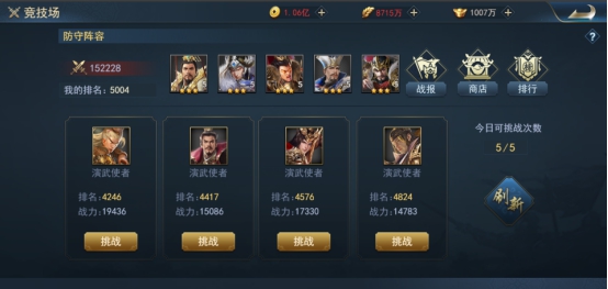 点击挑战按钮,即可对该玩家进行挑战。挑战胜利后,胜败双方将互换竞技场排名。若成功刷新自己