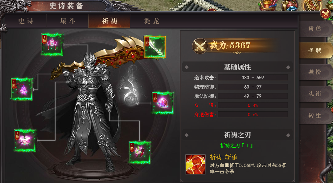 2、总共10个部位,集齐装备可获得套装效果和炎龙形象,可在【装扮-外观】中设置