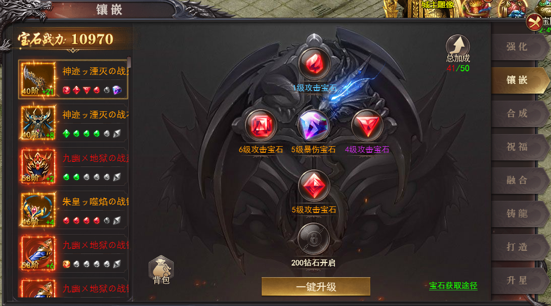 打造龙装针对装备槽位,更新之后不再需要拆除重新打造,龙装有等级,等级和装备阶数互相对应