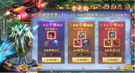炫酷机甲套装!0元白拿,到期全额返还充值元宝。