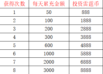 1、活动期间,每天累充达指定金额即可获得抽奖次数,可消耗次数和雷霆币进行转盘抽奖,赢取更多雷霆币,稳赚不赔,最高5倍收益!