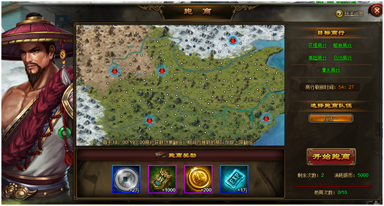 (一)跑商 国战玩法包含跑商、爵位、攻城掠地等多种玩法。