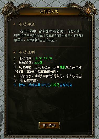 决战风云碑开启时间:19:30-19:50