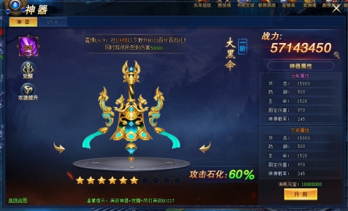 提升神器震慑等级,可提升百分百石化等级,并提升减伤