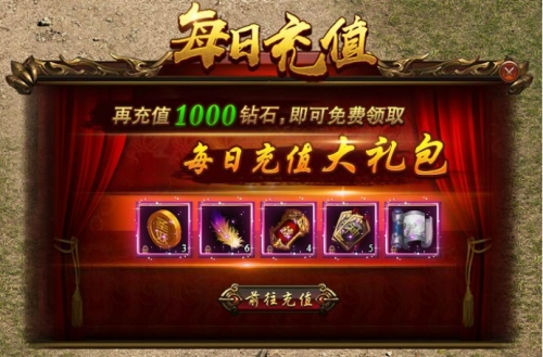 【活动内容】 首次充值任意金额玩家立刻直升1级,还有攻速+500的20阶武器、50万元宝与1000圣妖币等豪华大礼! 2.每日充值 【活动界面】