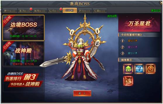 (当天边境BOS伤害排行前3名可获得进入战神殿资格)