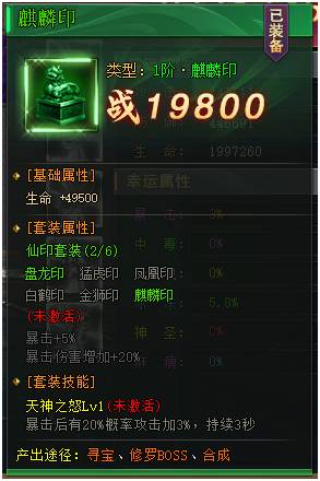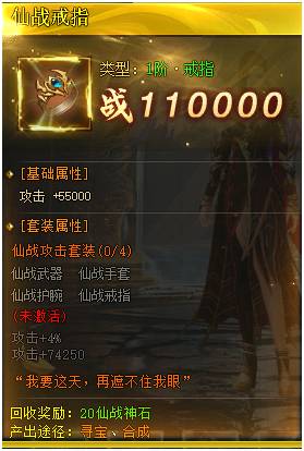 ① 根据颜色品质分为多套不同的仙战/仙印装备