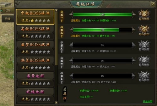 (2)在指定地图内击杀BOSS,即可提升该地图所属组的征服等级,获得属性加成