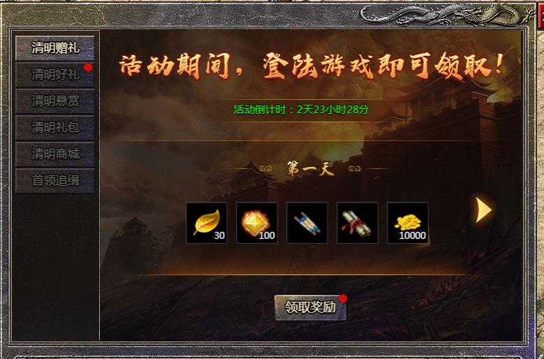 1. 活动期间玩家登录游戏即可领取登录奖励
