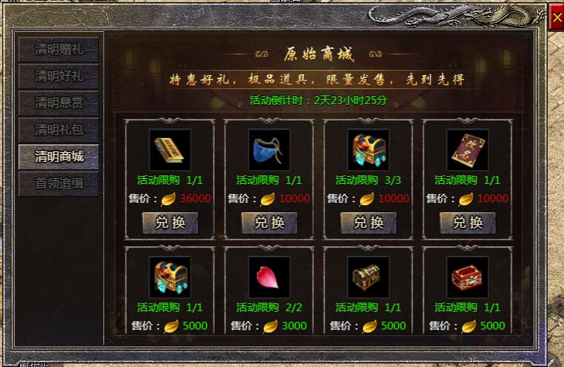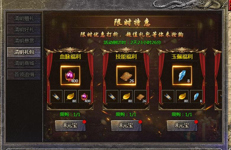 活动内容:活动期间可消耗元宝购买特惠礼包