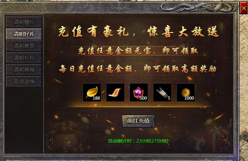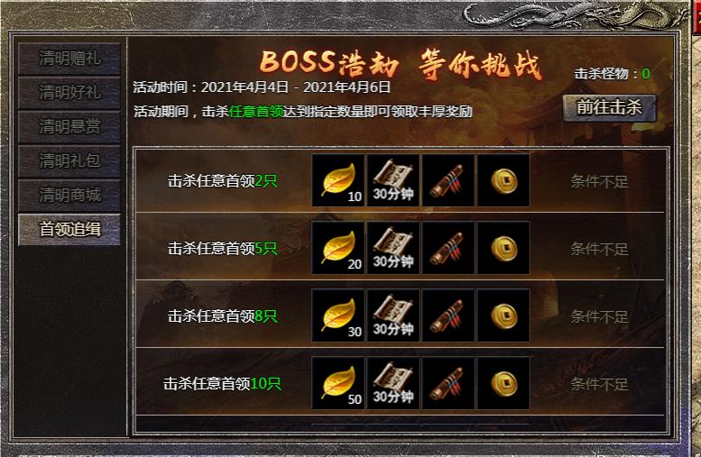 1.活动期间击杀指定数量的怪物即可获得奖励