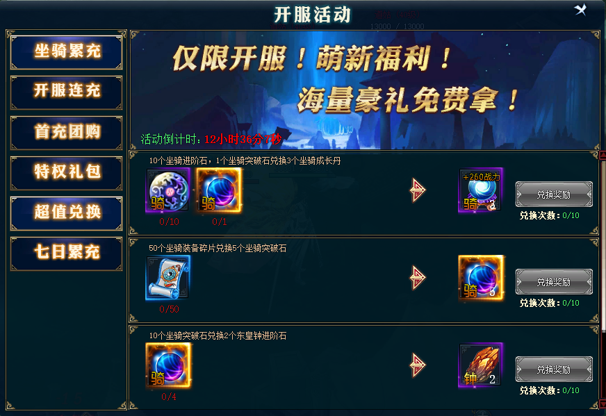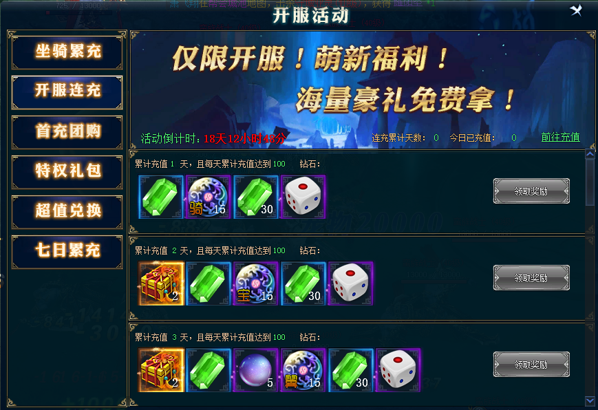 【活动内容】新区开启后,每日登陆即可领取超值豪礼。