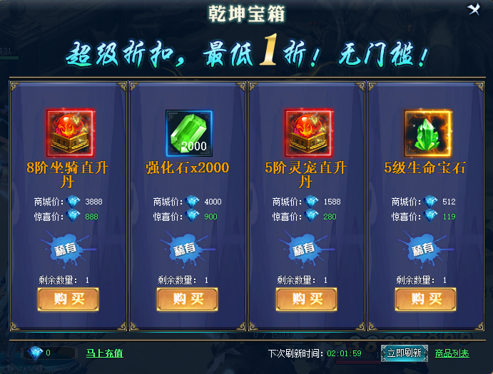 【活动内容】随机刷新折扣购买超值物品,最低1折!